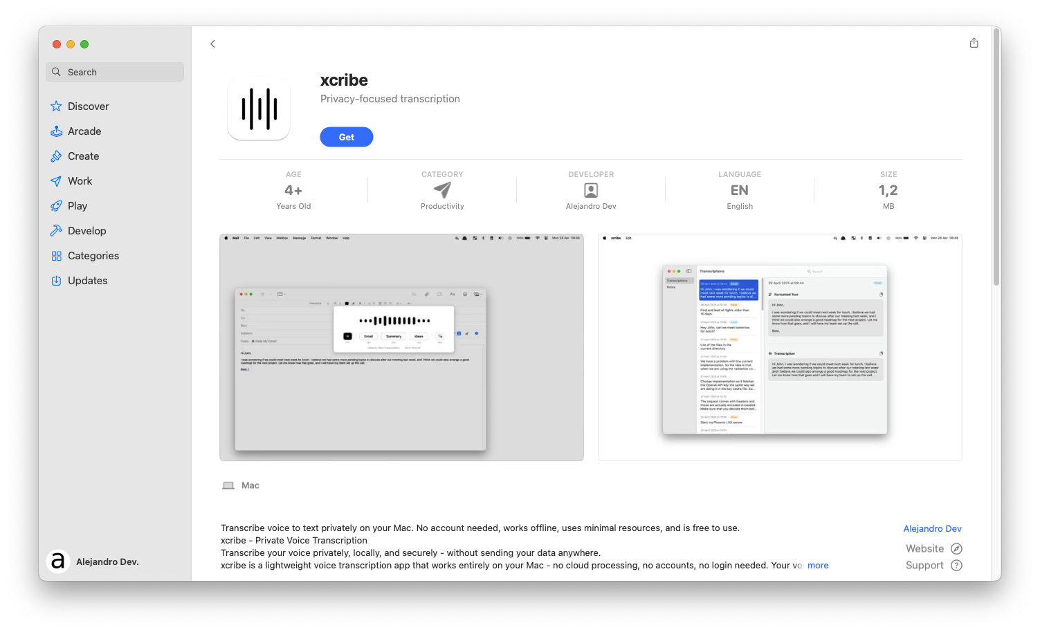 Using the keyboard shortcut you configured before, you can now open xcribe and start talking.